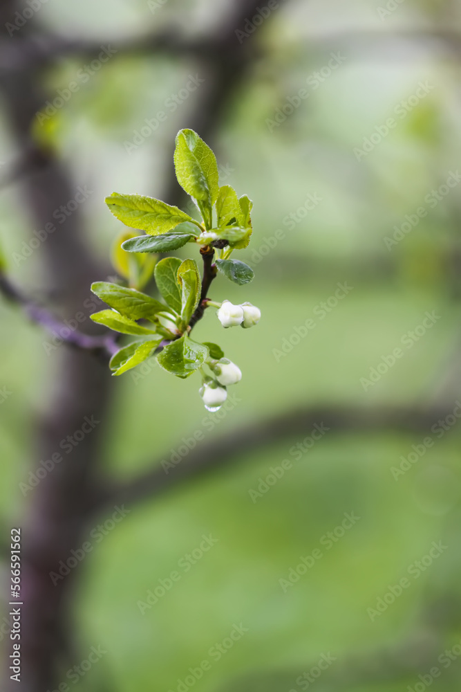 White cherry blossoms in spring park. Beautiful nature background. Springtime in countryside.
