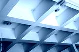 concrete structure ceiling, concrete with light and smoke detectors, architecture details