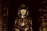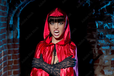 Halloween. Bloodthirsty Vampire Beautiful Woman in the dungeon