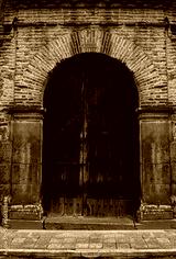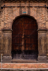Colonial door of bricks and antique wood