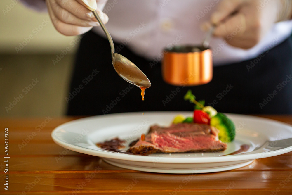 Beef steak and human hands,Be sure to have them ready in the restaurant.