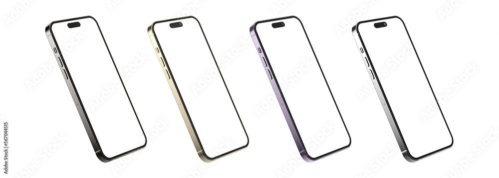 iPhone 14 pro Max on isolated white background. White mockup screen. All color.