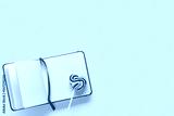 Notepad and lollipop in the shape of a heart on a pink background. Valentine's Day background. Copy space.