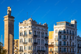 Beautiful architecture of the port in Valencia at sunrise, Spain.