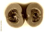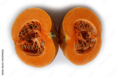 Cut in half Musque de provence or fairytale orange pumpkin isolated on white background. Cucurbita moschata on white