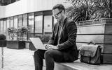 Good news. Happy smiling businessman checking mail from his client on laptop. Business, lifestyle concept