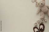 Baby background with space for text, product or design, neutral beige color, pregnancy announcement, baby waiting concept.