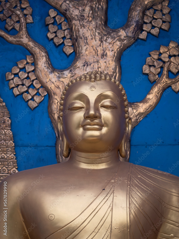 Peace Stupa, Pokhara, Nepal. Detail of Buddha Shakyamuni under the Boddhi tree.