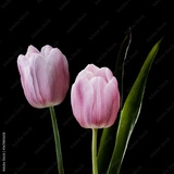 Pink tulip flowers isolated on black background. Tulip flowers head isolated on black. Spring flowers.