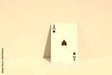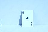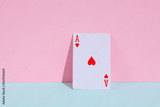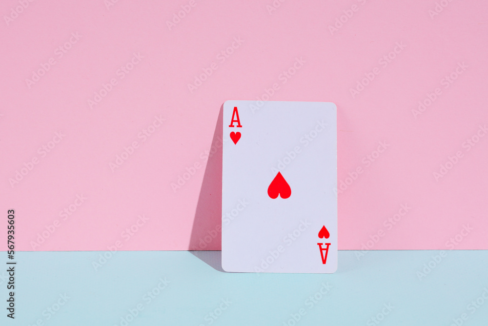 Ace of hearts on a blue-pink pastel background. Creative gambling layout