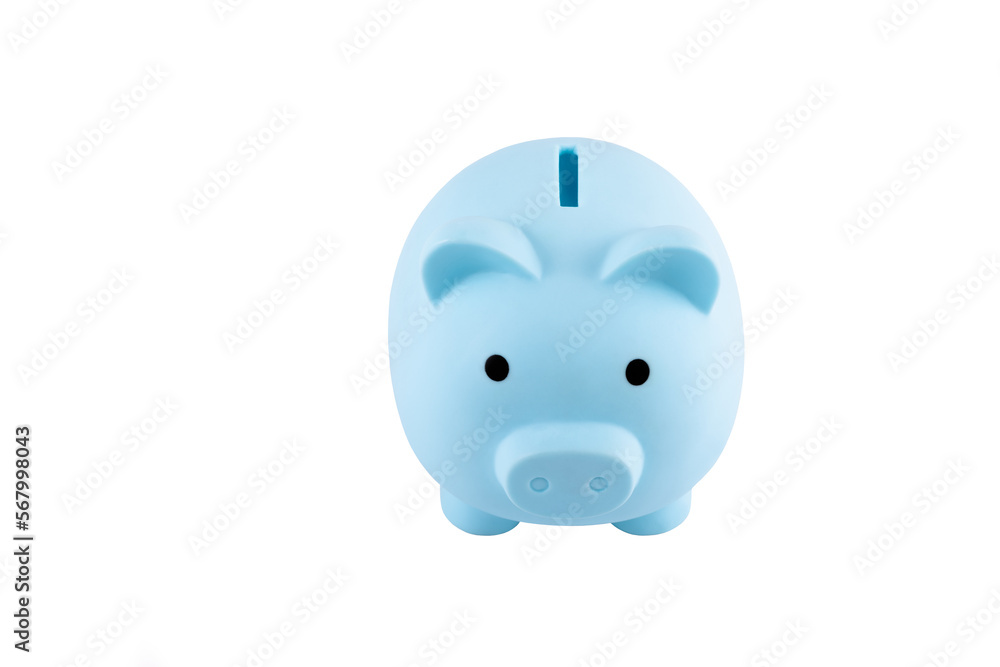 Blue piggy bank isolated on white background
