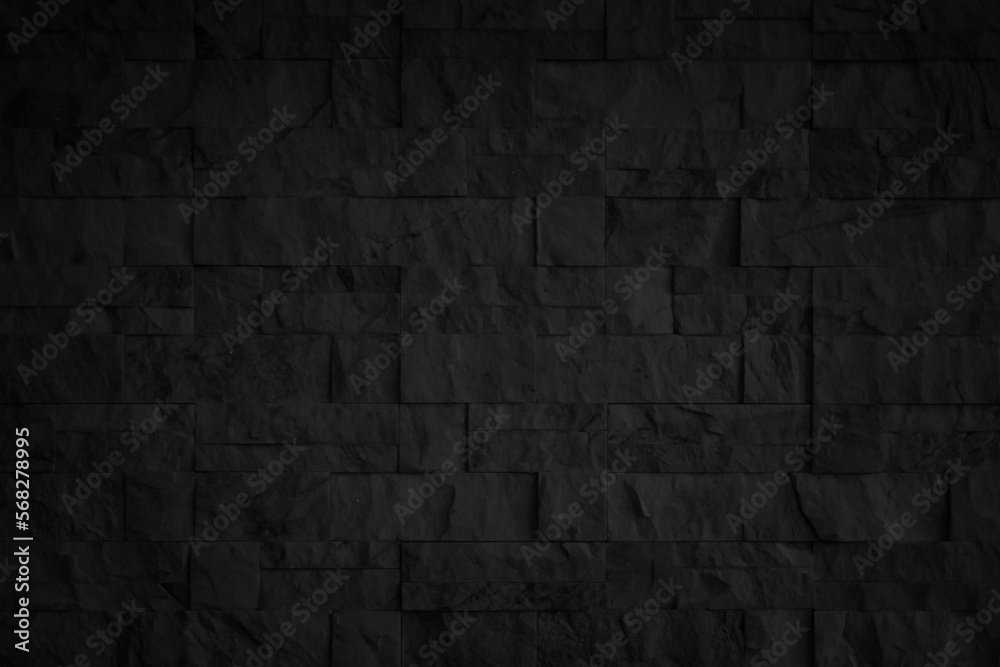 Abstract dark brick wall texture background pattern, Wall brick surface texture. Brickwork painted of black color interior old clean concrete grid uneven