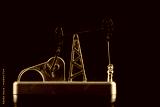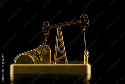Golden model of an oil pump on a black background
