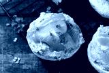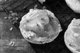 Fresh English Muffins with avocado and salmon. Healthy morning breakfast food