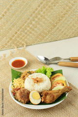 Nasi Uduk or Nasi Lemak, Steamed Rice with Various Side Dish.
