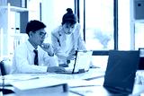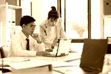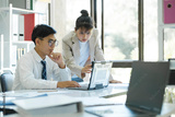 Businesspeople are working, discussing, analyzing using laptop and statistic..