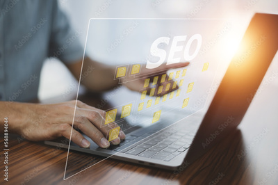 SEO Search Engine Analysis, SEO Search Engine Optimization concept with laptop computer. ranking traffic on website, internet technology for business company.