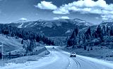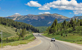 Eastbound lanes of Interstate highway 70 in Colorado descending from Vail Pass.