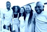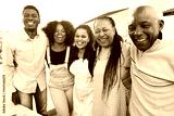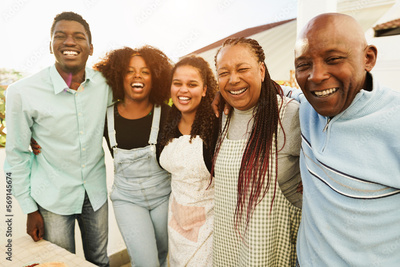 Happy african family cooking together in outdoor kitchen at home - Focus on senior woman face