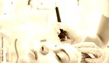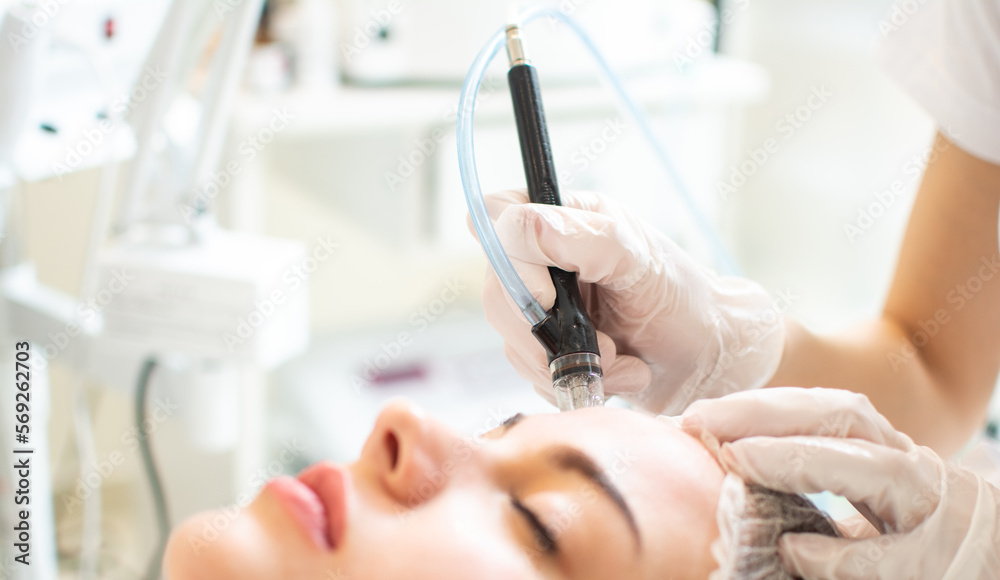 Closeup headshot of young woman receiving hydrafacial therapy at beauty spa