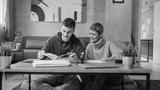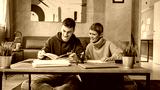 One student teenage caucasian man study learn with help of his tutor professor or mother senior woman at home having private lesson to prepare for exam education concept real people copy space