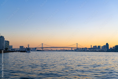 東京水辺ライン船上から見た夕景(レインボーブリッジ)