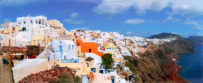 panorama of Oia village on Santorini island Greece