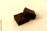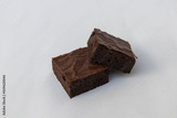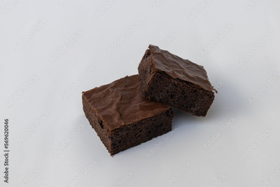 Pieces of fresh brownie on white background. Delicious chocolate pie