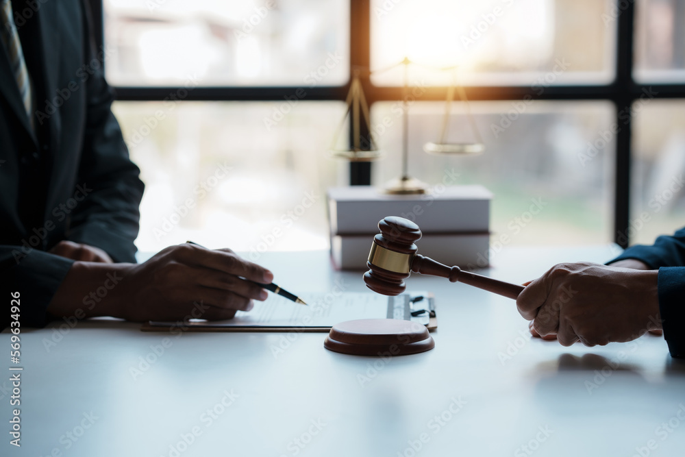 Lawyer and client sign variou financial legal contract to mediate with the legal execution department and make appointment for client to mediate debt settlement agreement.