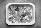 Top view of baking dish casserole with raw uncooked fish salmon steaks, broccoli, cauliflower, carrot. Preparing a healthy low carb dinner concept