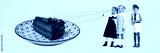 Contemporary art collage. Creative design. Little girls, children looking on delicious cake. Sweet tooth. Kids fashion and lifestyle. Concept of retro style, vintage, creativity, surrealism