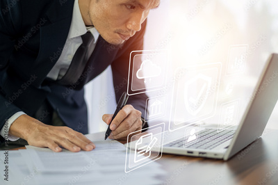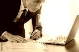 businessman signature document, Signing contract, business agreement, deal concept. Business man signing official contract, formal document with a pen and using laptop computer on table