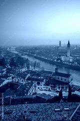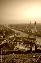 Ciy of Verona and Adige river aerial view, tourist destination in Veneto region of Italy