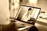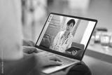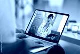 Doctor in white uniform giving consultation to client via internet, elderly woman having online consultation with doctor on laptop