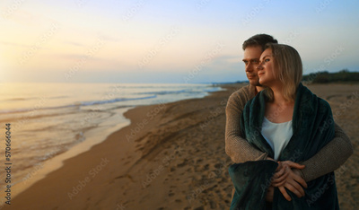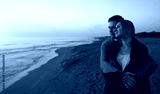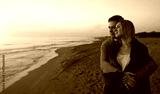 Attractive couple at sunset by the sea.