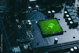 Concept of green technology. green world icon on circuit board technology innovations. Environment Green Technology Computer Chip.Green Computing, Green Technology, Green IT, CSR, and IT ethics
