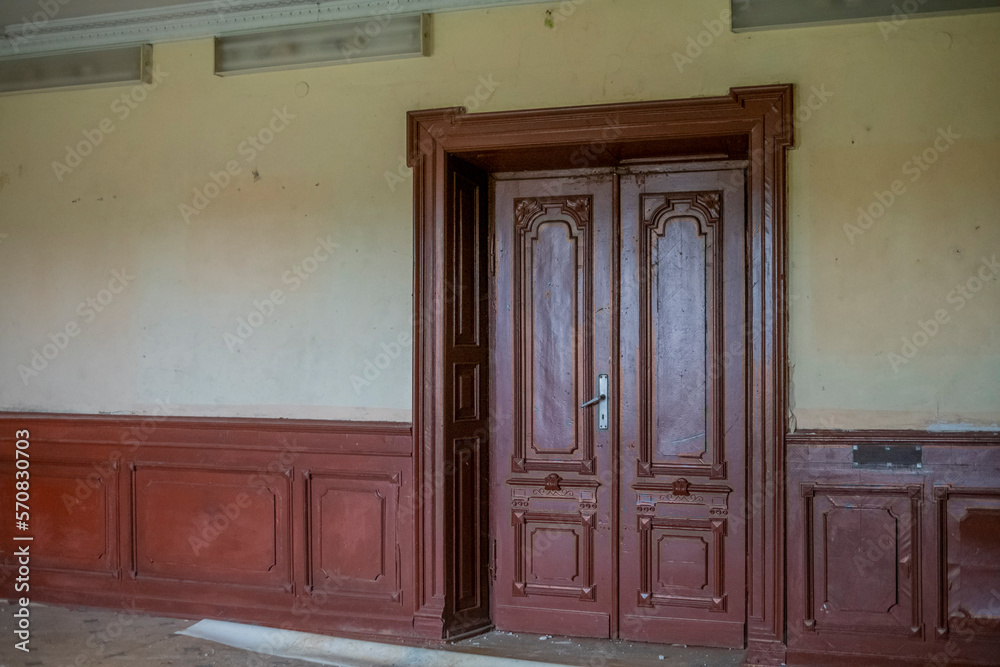 An old school in an abandoned manor house in central Poland, Europe in autumn