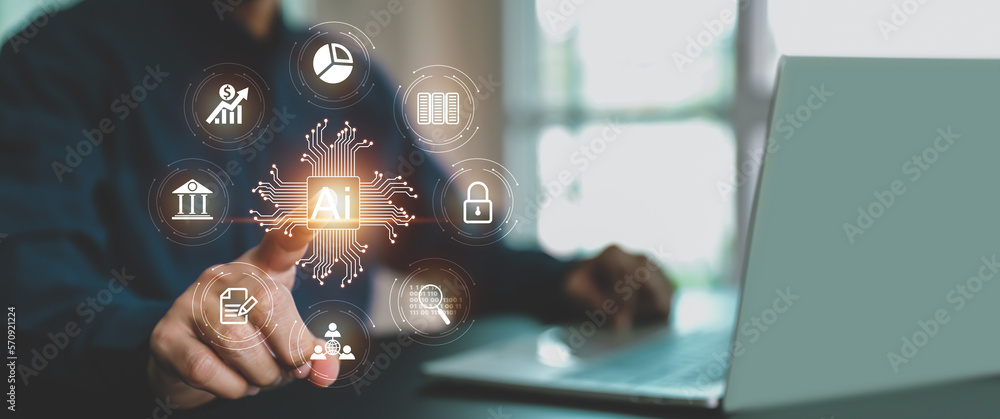 AI learning and business artificial intelligence system for digital transformation technology of ideas and global business or Use Ai for Data analysis, processing and management internet of things IoT