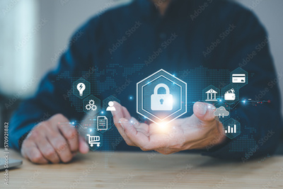 Cyber security data protection online computer network and personal privacy user access key protect and hacker cybercrime prevent or safety storage cloud transfer sharing financial internet banking