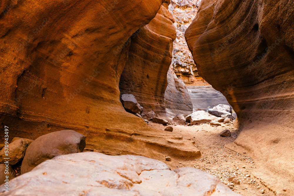Scenic limestone canyon, Barranco de las Vacas in Gran Canaria, Canary islands, Spain