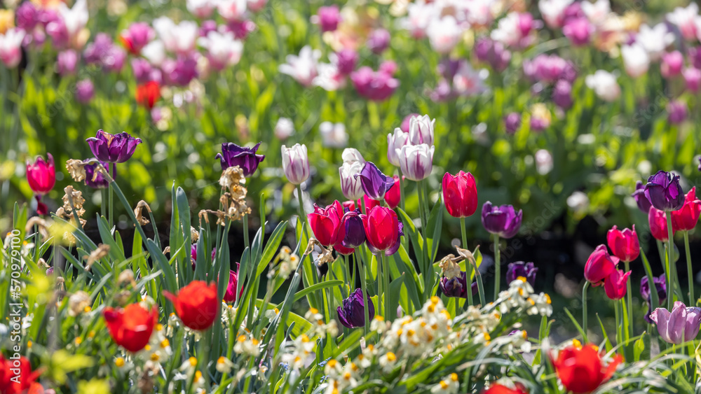 Tulip flowers at Windmill island gardens in Holland, Michigan