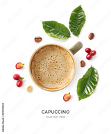 Creative layout made of coffee and coffee beans on white background. Flat lay. Food concept. Macro concept.