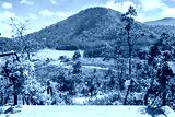 Landscape with flowers, lake and mountains in Da Lat in Vietnam