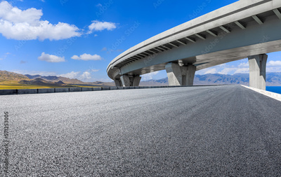 Asphalt road and bridge with mountain background