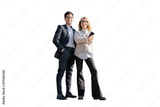 Colleagues male and female business promising young people, transparent background, png, isolated.