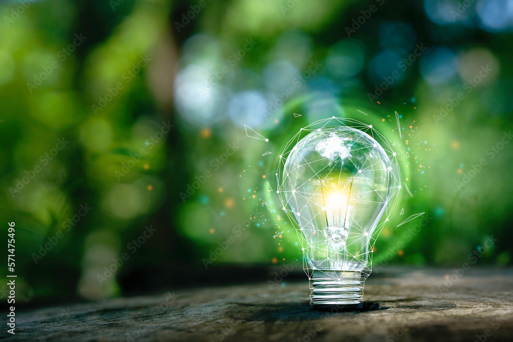 the light bulb that represents green energy for technology environmental friendly renewable energy or clean circular energy concept. sustainable energy sources.