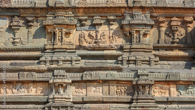 Sculpture on remnants of Hampi ruins in Karnataka, India.