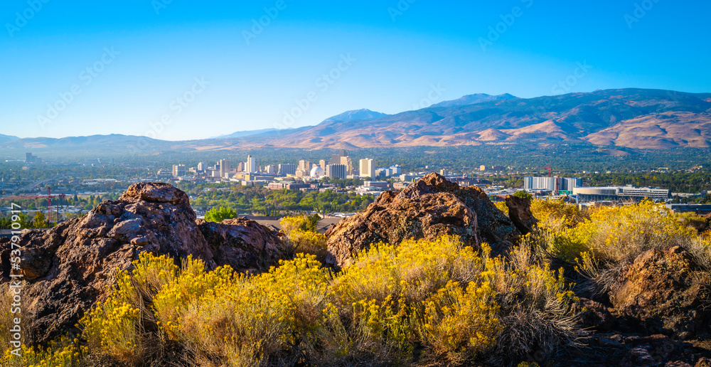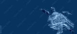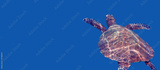 Banner with wild sea turtle swimming among tropical corals and fishes