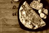 Omelette with mozzarella cheese and avocado. Ketogenic, keto diet breakfast. Top view, copy space