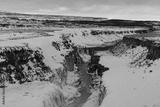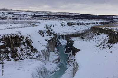 A small valley of rock and ice covered by snow just after Gulfoss in Iceland.